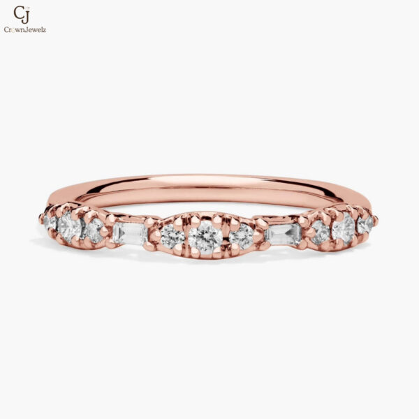 Gracefully crafted in radiant yellow gold, this ring features a delicate row of shimmering diamonds set along a softly curved crown. The intricate setting allows light to dance beautifully from every angle. Elegant and refined, it’s a timeless piece designed to add a subtle yet captivating sparkle to your everyday style.