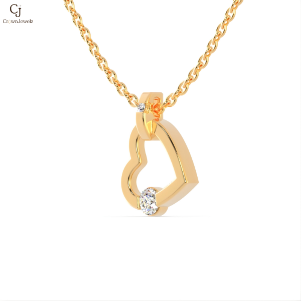 sleek yellow-gold heart-shaped lock design accented with a sparkling round diamond at the base, symbolizing love, security, and timeless romance in a modern, elegant style.