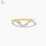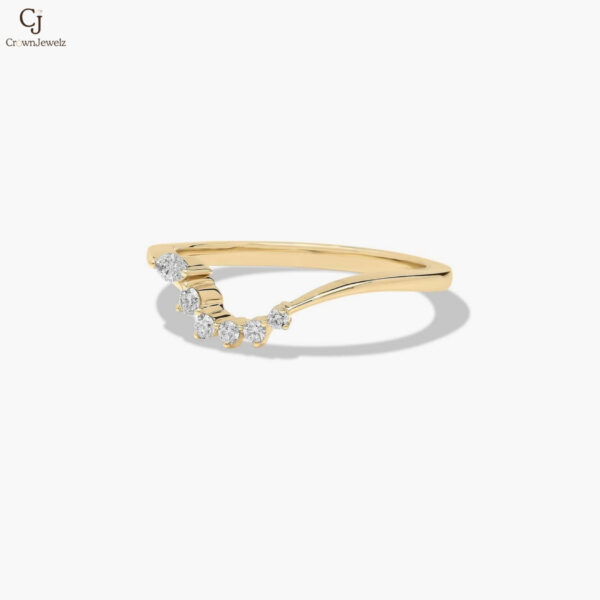 Delicate and contemporary, this yellow gold ring features a graceful V-shaped design adorned with shimmering round diamonds. The asymmetrical arrangement adds a modern touch while maintaining a soft, elegant silhouette. Perfect for stacking or wearing solo, it brings subtle sparkle to every moment.