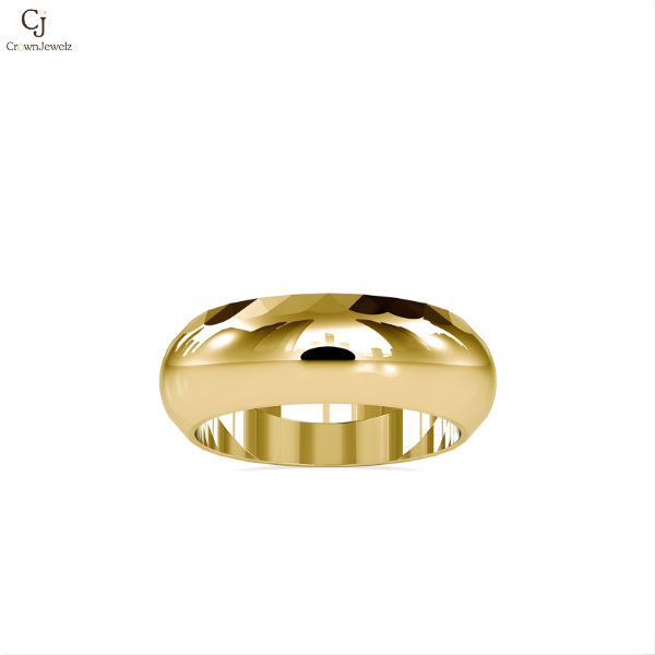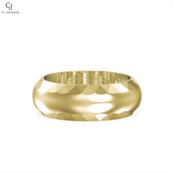 The Aurora Facet Gold Band features a bold, polished profile enhanced by subtle diamond-cut faceting along the edges. Its smooth, high-shine finish reflects light beautifully, giving the ring a refined yet modern character. Designed for comfort and durability, this band is ideal as a wedding ring, anniversary band, or statement piece for everyday luxury. The balanced thickness and elegant contours make it timeless, versatile, and unmistakably premium.