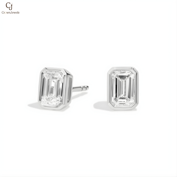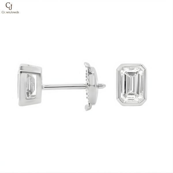 Bezel Set Emerald Cut Lab-Grown Diamond Stud Earrings