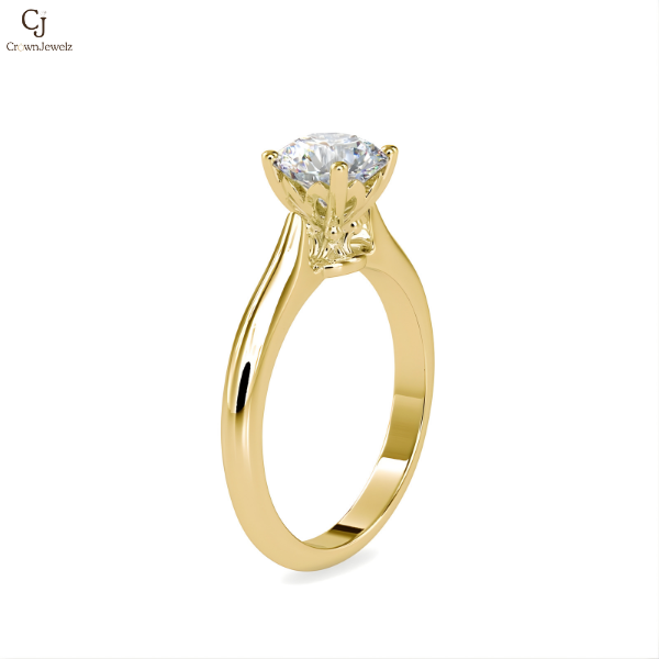 sophisticated design features a perfectly proportioned band that gently frames a radiant center stone. The polished finish and precise setting create a graceful harmony, ideal for those drawn to timeless beauty with a modern soul.