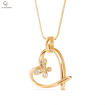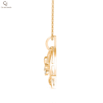 Celestia Bloom Pendant features soft looping petals outlined with shimmering stones that create a glowing floral halo. The flowing gold curves give the piece a sense of motion and delicacy. A sophisticated design that embodies elegance and natural beauty.
