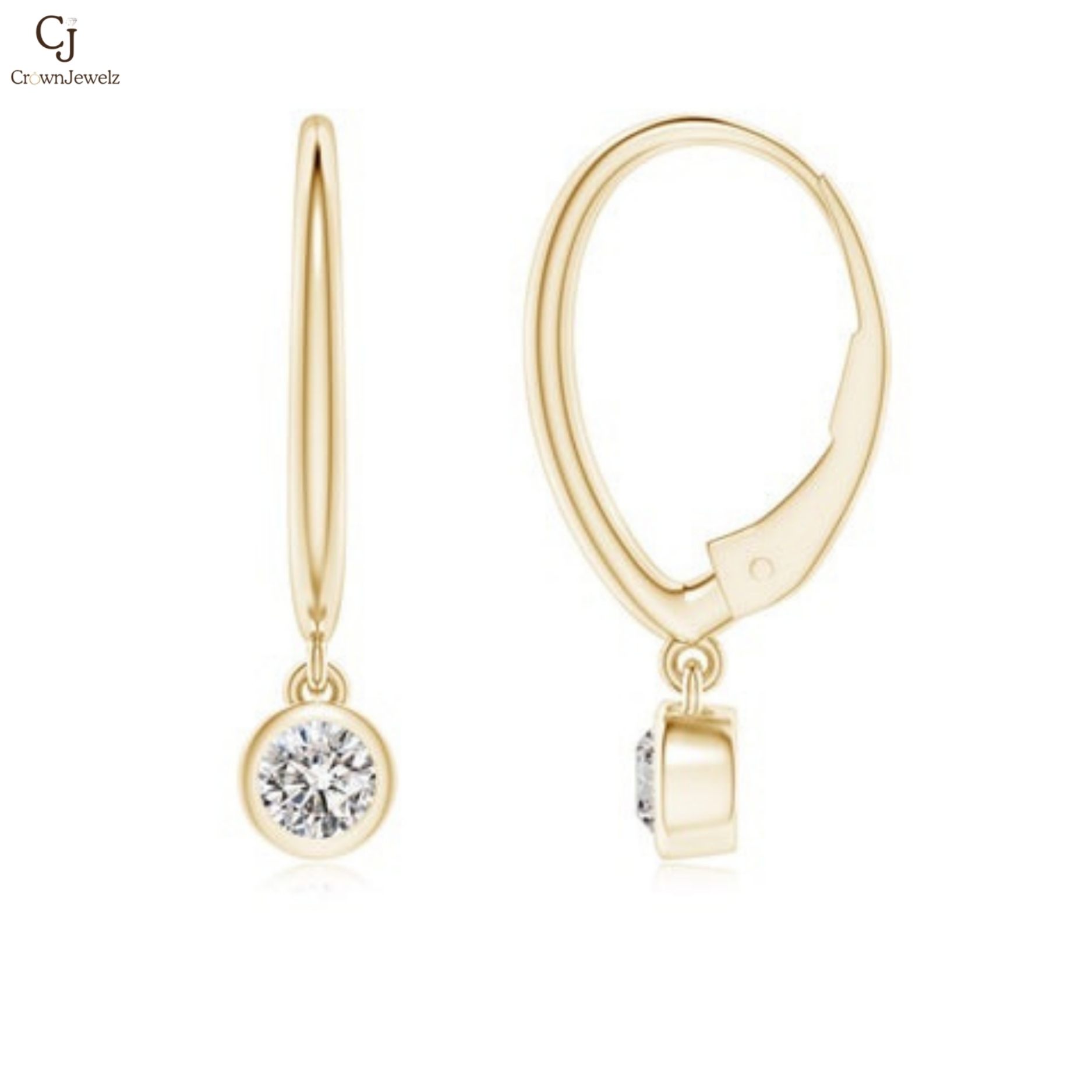 Classic Bezel-Set Round Diamond Leverback Drop Earrings
