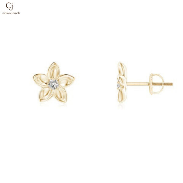 These delicate gold stud earrings feature a charming floral design with a sparkling center stone that adds a touch of brilliance. The soft petal detailing creates a graceful and feminine look, perfect for everyday elegance or special occasions. A timeless piece that captures beauty, simplicity, and refined style.