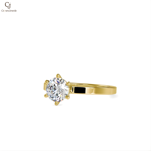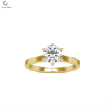 A timeless solitaire engagement ring featuring a brilliant round-cut diamond set in a refined six-prong setting. Crafted in warm rose gold, the polished band offers a sleek and elegant profile that enhances the diamond’s sparkle while maintaining a minimalist aesthetic. Perfect for those who appreciate classic design with a modern romantic touch, this ring is ideal for proposals, anniversaries, or meaningful milestones.