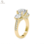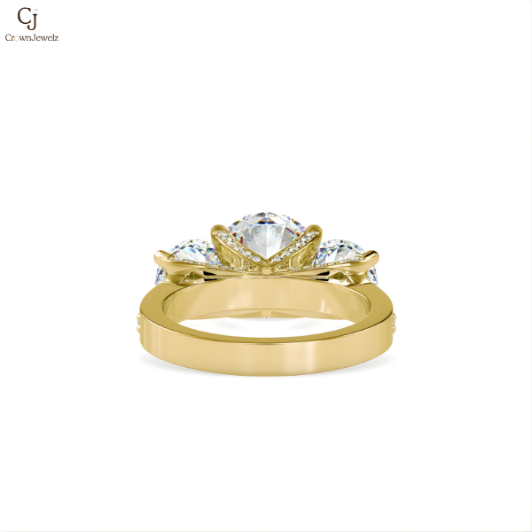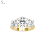 A brilliant round solitaire framed by an elegant twisting pavé band, symbolizing infinite love. A perfect harmony of movement, sparkle, and romance.