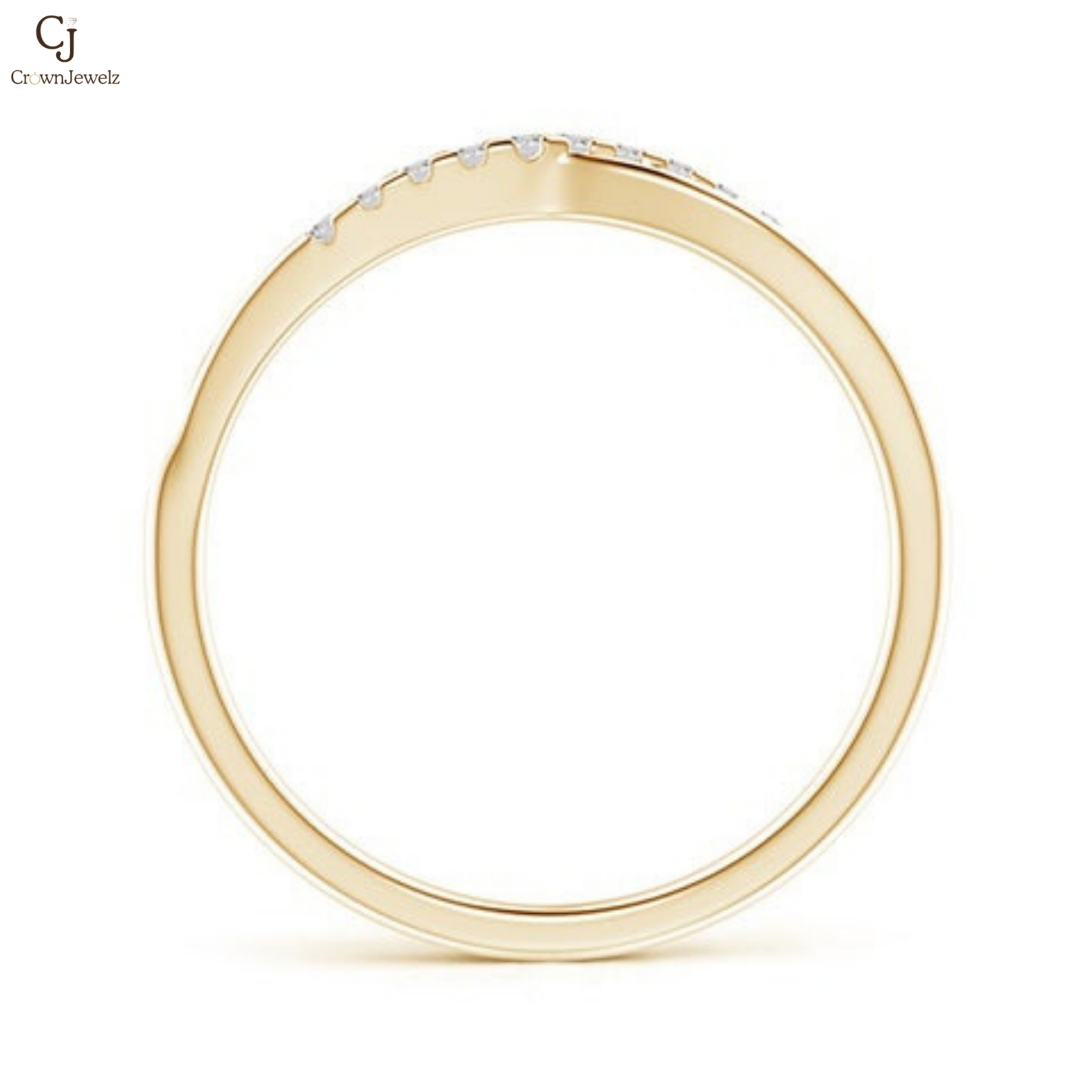 Sleek and refined, this yellow gold ring features a graceful split design adorned with a row of shimmering diamonds. The delicate curve adds a modern twist to a timeless silhouette. Effortlessly elegant, it’s perfect for everyday sparkle or meaningful moments.
