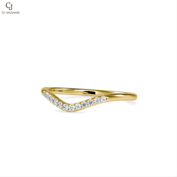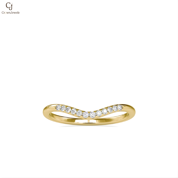 This elegant V-shaped band features pavé-set diamonds that contour perfectly around an engagement ring. Crafted in rose gold for a soft, romantic glow.