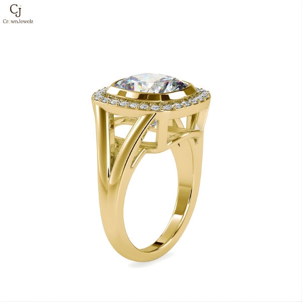 Make a bold statement of elegance with this breathtaking Cushion Halo Solitaire Diamond Ring, beautifully crafted in radiant yellow gold. At the center lies a dazzling cushion-cut diamond, expertly set to maximize brilliance and fire.