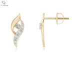 These elegant gold stud earrings feature a graceful curved design accented with a delicate row of sparkling stones and a brilliant center gem. Their flowing silhouette adds a modern yet feminine touch, making them perfect for both everyday wear and special occasions. A refined piece that brings subtle shine and timeless sophistication to any look.