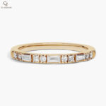 Sleek and sophisticated, this elegant band features a refined arrangement of baguette and round diamonds set in radiant yellow gold. The clean lines and balanced design create a modern sparkle with timeless appeal. Delicately crafted for effortless wear, it offers subtle brilliance in every movement. A perfect piece to symbolize enduring love and understated luxury.