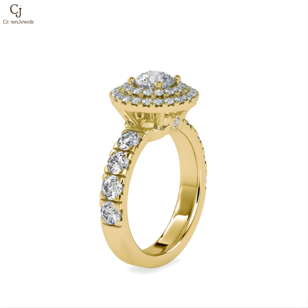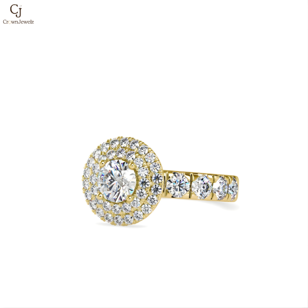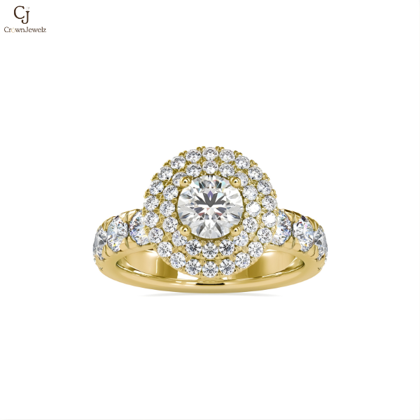 Double Halo Round-Cut Diamond Engagement Ring