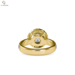 The band is adorned with additional diamonds along the shoulders, enhancing brilliance from every angle. Crafted in warm rose gold, the design blends timeless romance with luxurious modern detailing. Perfect for those who love classic elegance with a bold, radiant presence.