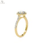 A round brilliant diamond is set on a fluid, gently contoured band that creates a sense of motion and grace. The minimalist design highlights the stone while offering a contemporary, elegant silhouette.