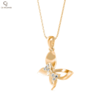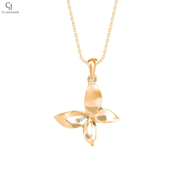 Étoile Flutter Cross-Heart Pendant features a sleek golden heart shaped around a delicate butterfly, accented with subtle sparkling stones and a graceful cross detail. Its flowing lines symbolize faith, love, and transformation coming together in perfect harmony. This elegant design blends spiritual meaning with modern luxury, making it a truly special statement piece.