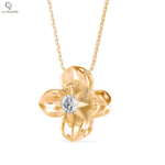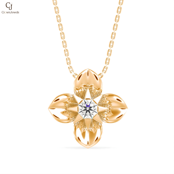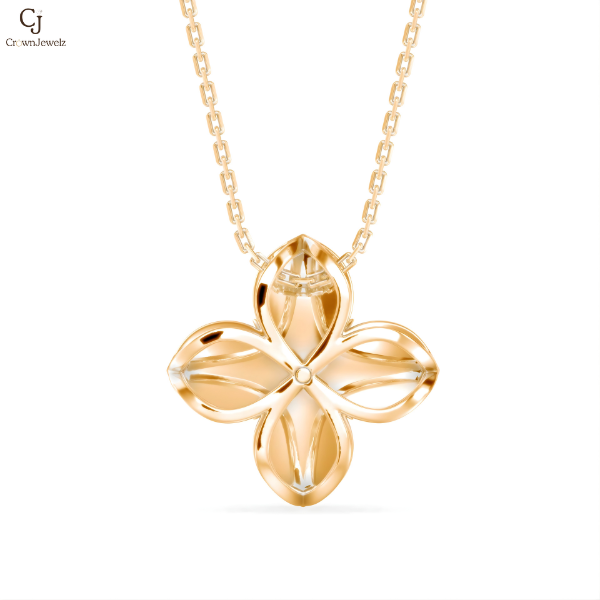 Fleur Royale Pendant showcases a luxurious four-petal floral form in high-polish gold, with softly sculpted contours that create a radiant, elegant bloom. This sophisticated floral design reflects beauty, harmony, and refined craftsmanship.