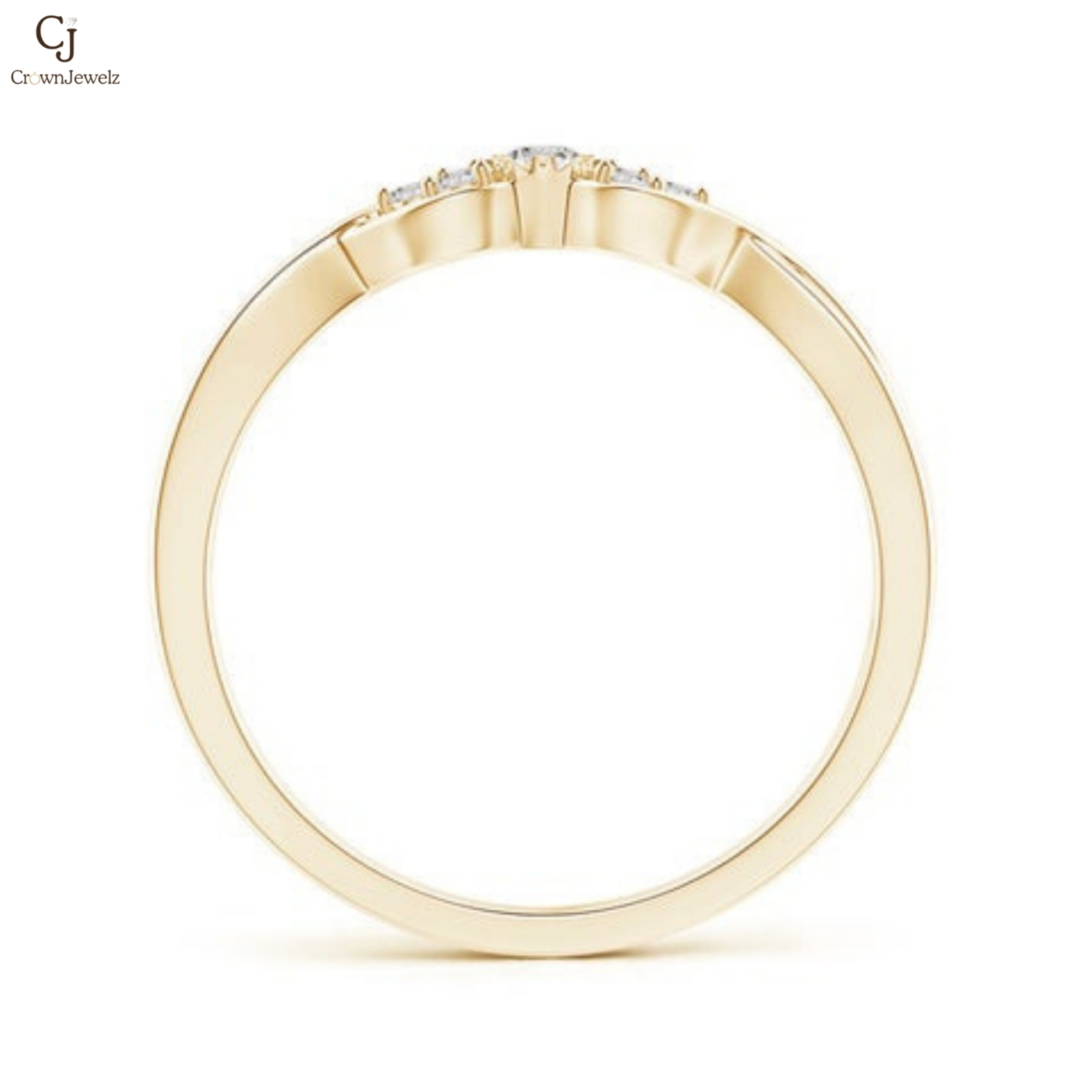 Gracefully intertwined in warm yellow gold, this ring features a delicate cluster of sparkling diamonds at its center. The flowing twist design symbolizes unity and everlasting love. Elegant yet subtle, it’s a timeless piece perfect for everyday brilliance or a meaningful promise.