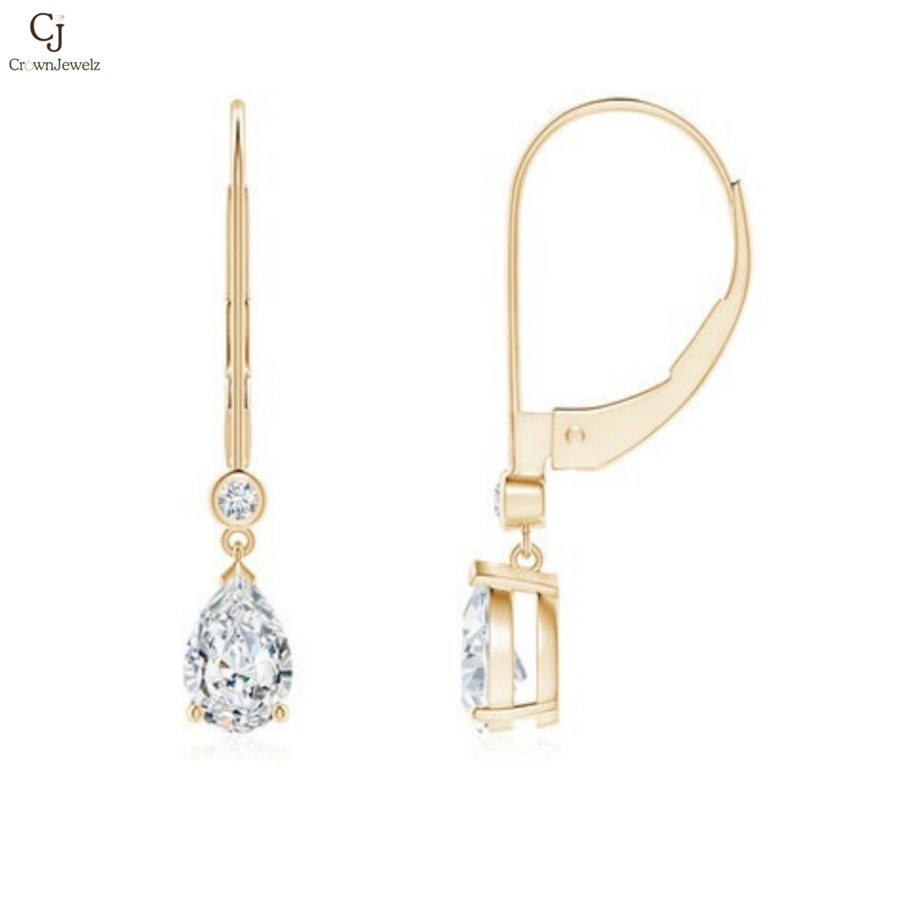 “Lab-Grown Pear-Shaped Diamond Leverback Drop Earrings with Lab Diamond Accent “