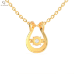 polished yellow-gold horseshoe design cradling a brilliant round diamond at its center, symbolizing luck, protection, and timeless elegance in a sleek modern form.