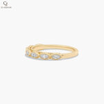 Elegant and intricately detailed, this gold band features marquise-cut diamonds framed by delicate beaded accents. The continuous pattern creates a graceful rhythm of sparkle and texture. Its refined silhouette makes it perfect for stacking or wearing as a statement on its own. A timeless design that blends vintage charm with modern sophistication.