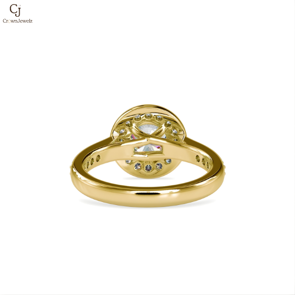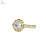 A sleek round-cut diamond framed in a smooth bezel setting, crafted in polished rose gold. This modern minimalist design offers a secure setting with timeless elegance, perfect for everyday wear and contemporary tastes.