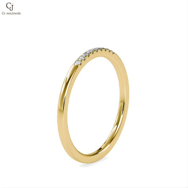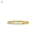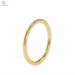 A sleek rose gold open ring accented with a single round diamond on one end and a geometric detail on the other. Minimalist and modern, perfect for everyday elegance.