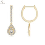Pave And Prong Set Diamond Teardrop Hoop Earrings
