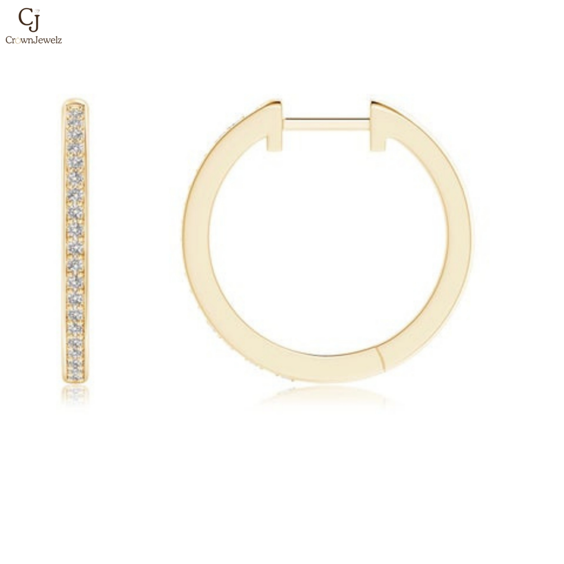 Pave-Set Round Diamond Hinged Hoop Earrings