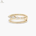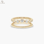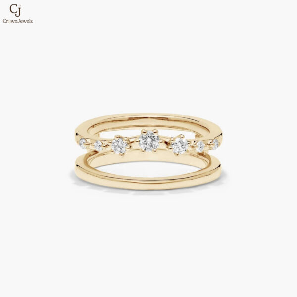 Gracefully layered, this yellow gold ring features a delicate double-band silhouette crowned with brilliant round diamonds. The graduating center stones create a soft, radiant sparkle that catches the light from every angle. Elegant yet contemporary, it’s a refined piece designed to shine beautifully on its own or stacked.
