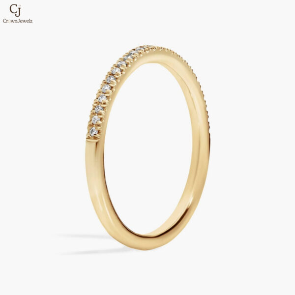 Sleek and sophisticated, this delicate gold band is adorned with a seamless row of shimmering diamonds for a refined sparkle. Its slim silhouette offers effortless elegance, perfect for stacking or wearing solo. The timeless design makes it a versatile piece for everyday luxury. A subtle yet radiant symbol of everlasting beauty.