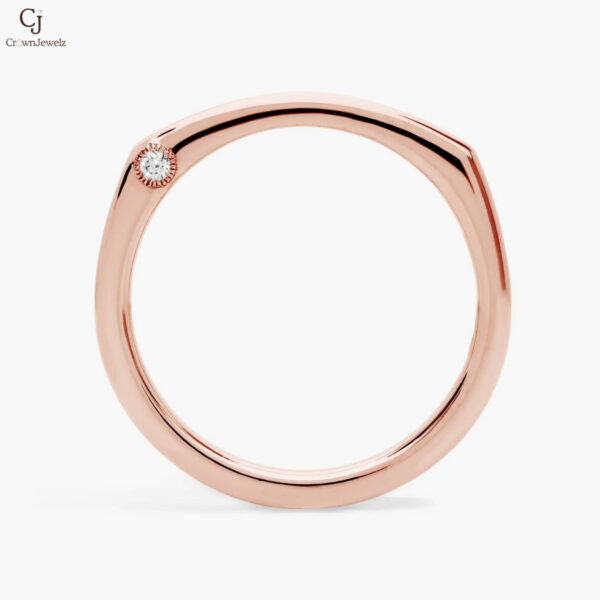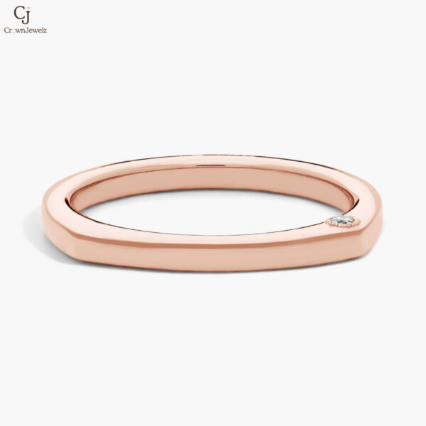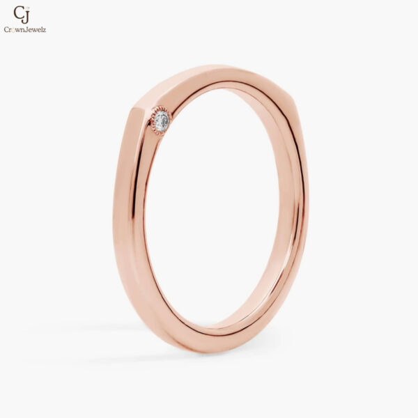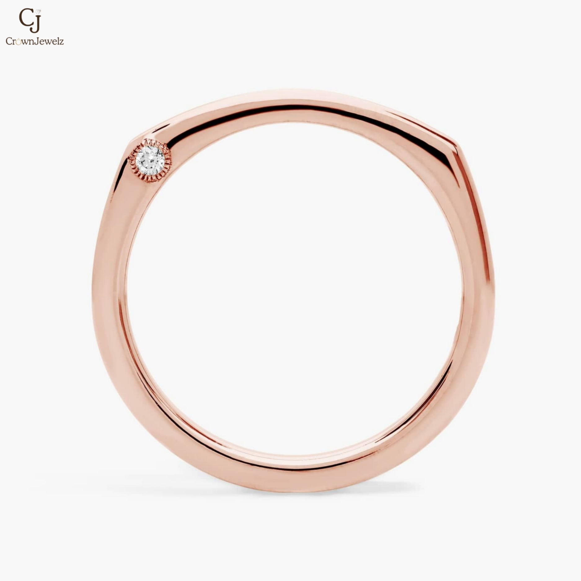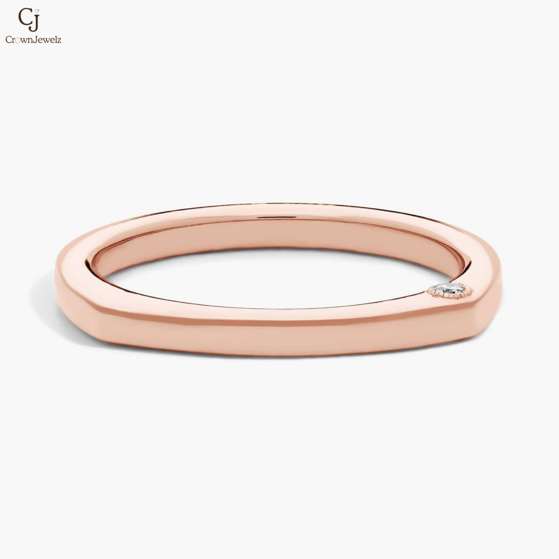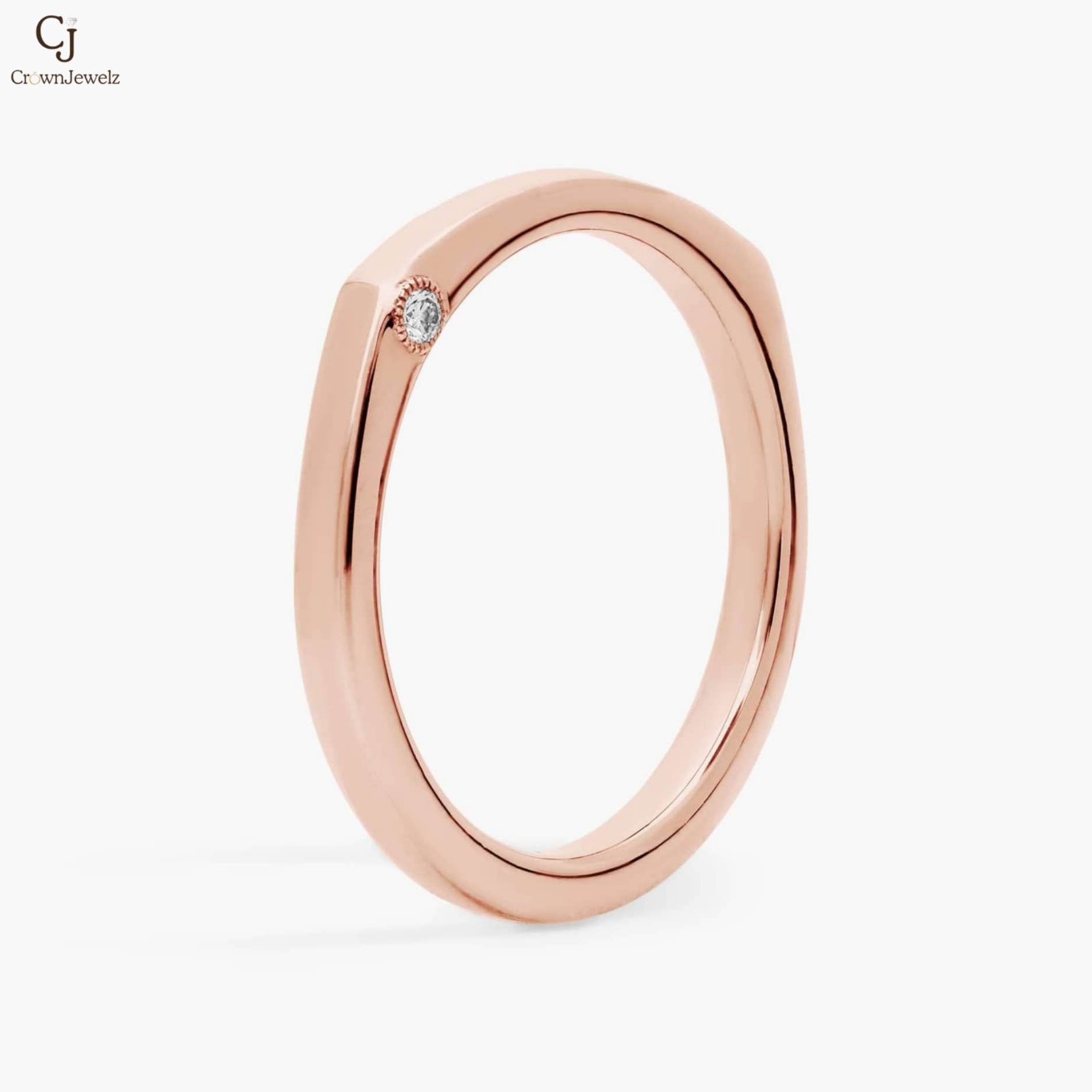 Sleek and understated, this rose gold band is the definition of modern minimalism. A single bezel-set diamond adds a subtle touch of sparkle, perfectly complementing the clean, geometric silhouette. Effortlessly elegant, it’s a timeless piece made for everyday refinement.