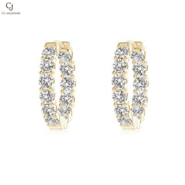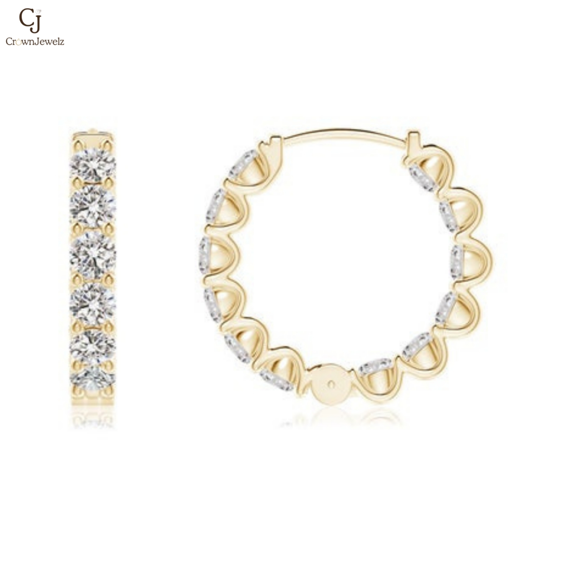 Prong-Set Round Diamond Inside Out Hinged Clip Hoop Earrings