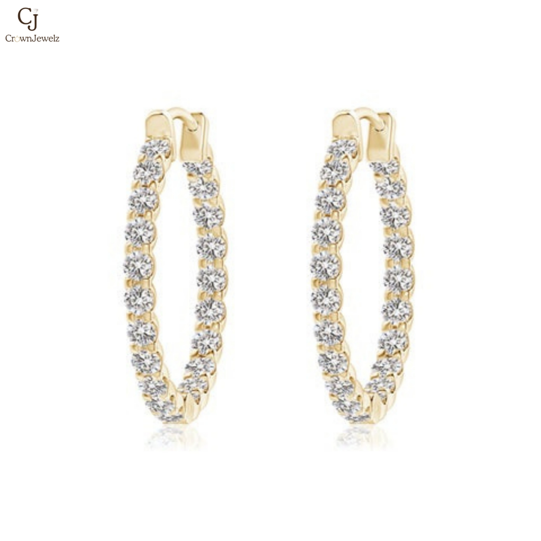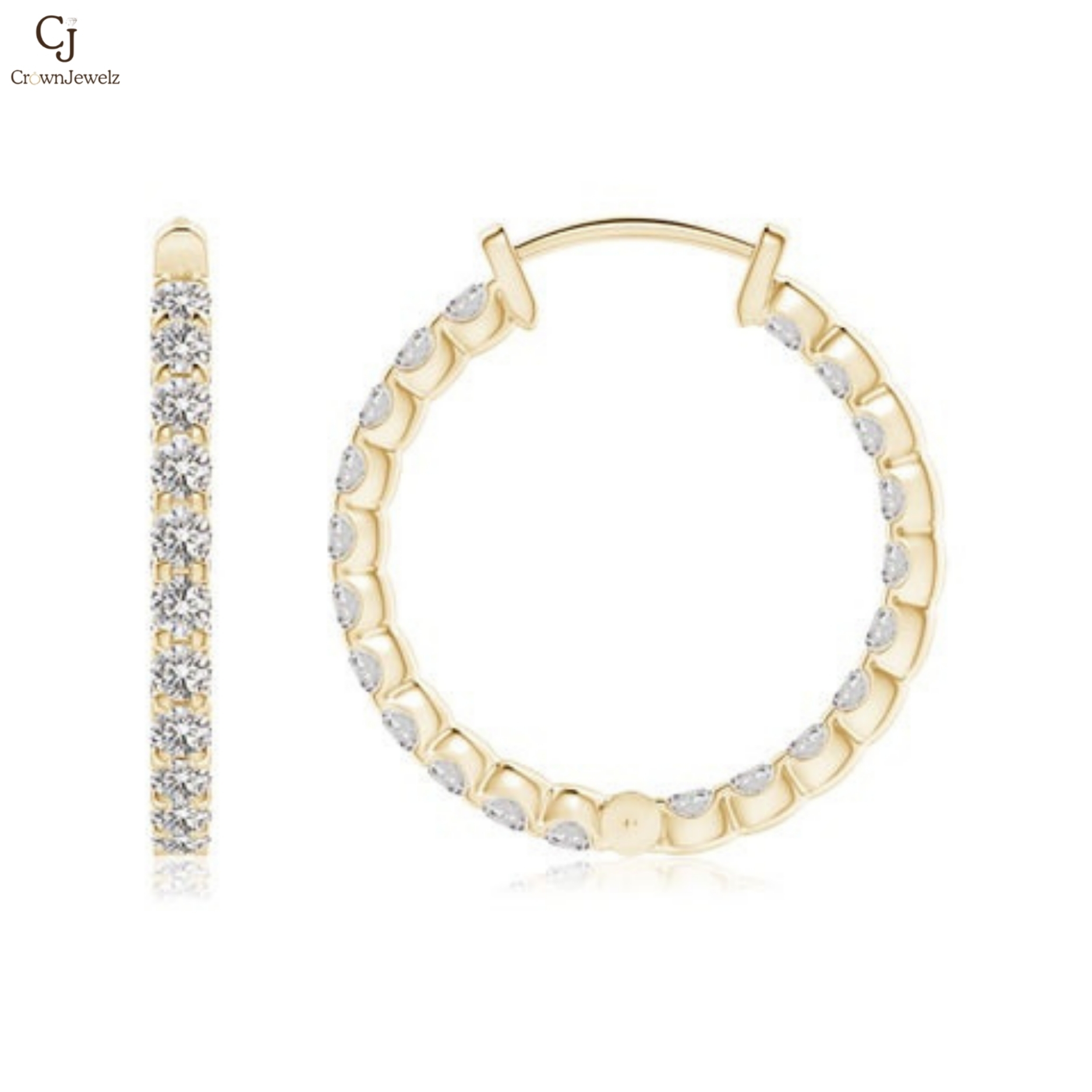 Prong-Set Round Diamond Inside Out Hoop Earrings