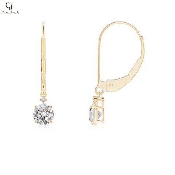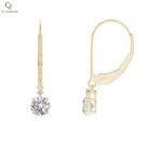 Prong-Set Round Diamond Leverback Dangle Earrings