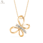 Radiant Filigree Butterfly Pendant displays an ornate gold butterfly with open lattice-style wings designed to catch and reflect light beautifully. Subtle diamond accents add brilliance, while the intricate detailing gives the piece a couture-like elegance. This pendant is a true expression of fine artistry.