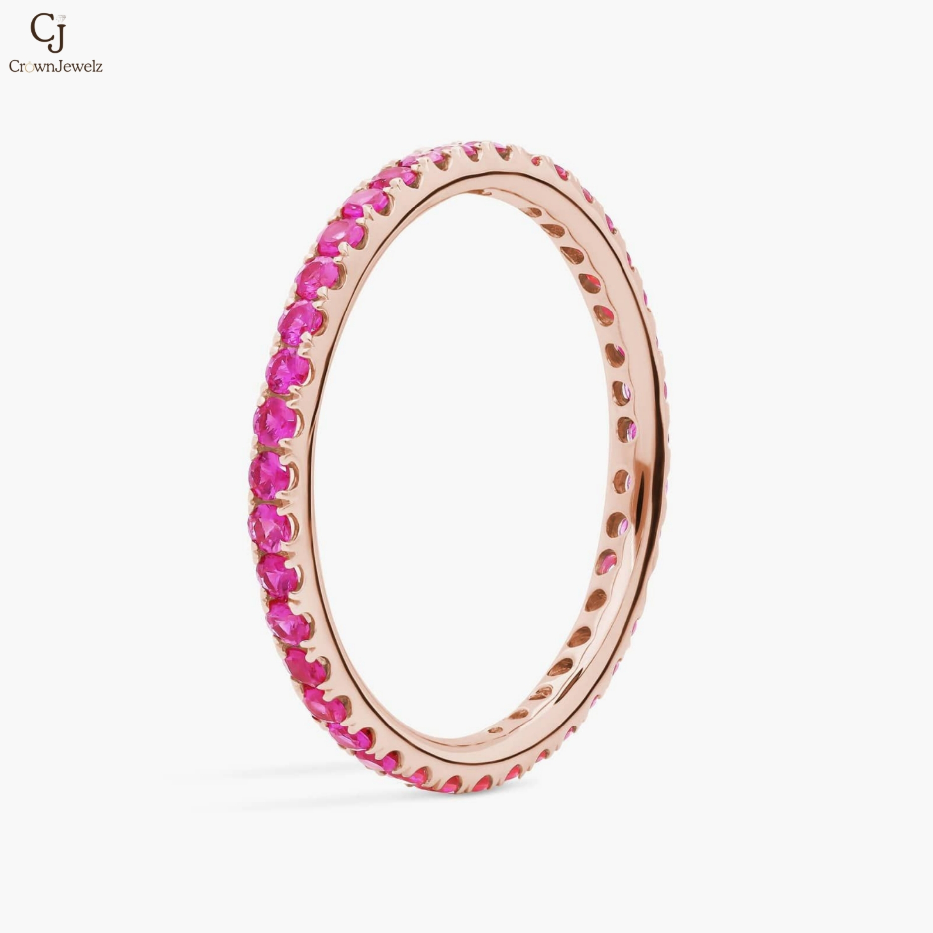 Riviera Pavé Pink Sapphire Eternity Ring in 18k Rose Gold
