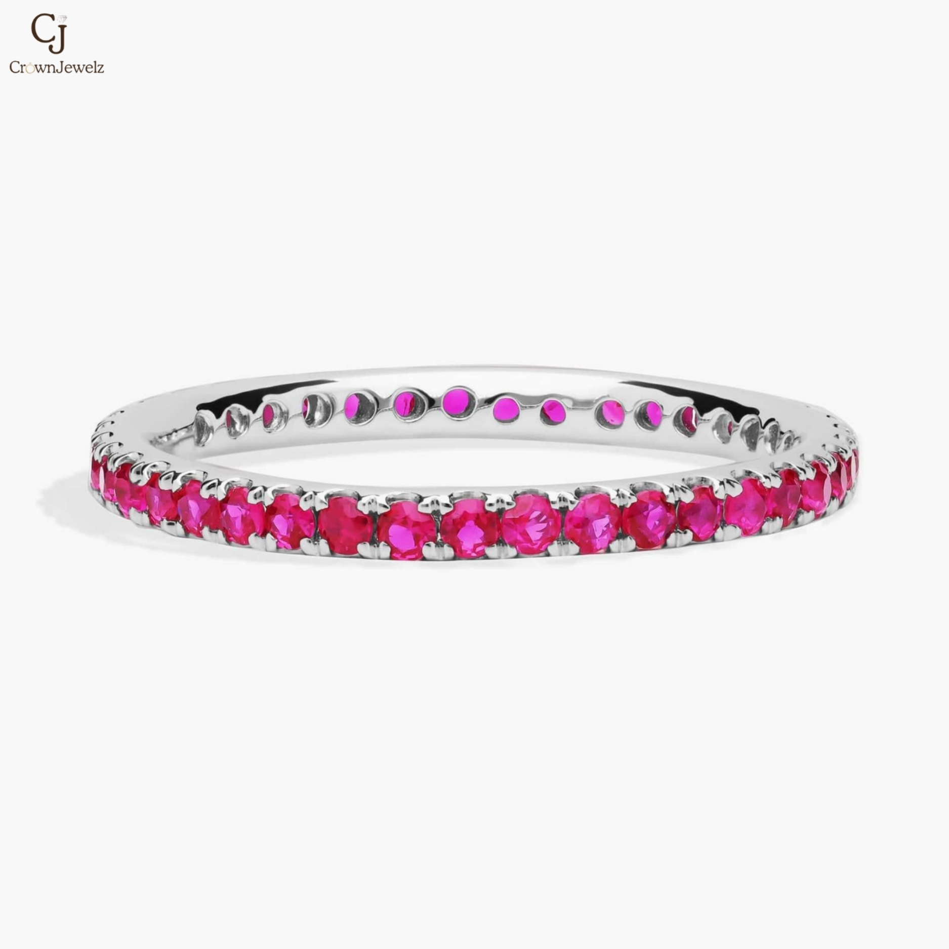 This elegant eternity ring showcases a beautiful blend of sparkling white diamonds and vibrant ruby gemstones. The seamless arrangement creates a striking contrast that captures light from every angle. Set in a sleek, polished band, the design symbolizes endless love and timeless beauty. A refined piece perfect for adding color and brilliance to any jewelry collection.
