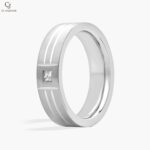 Single Diamond Dual Polish Inlay Matte Wedding Ring in Platinum
