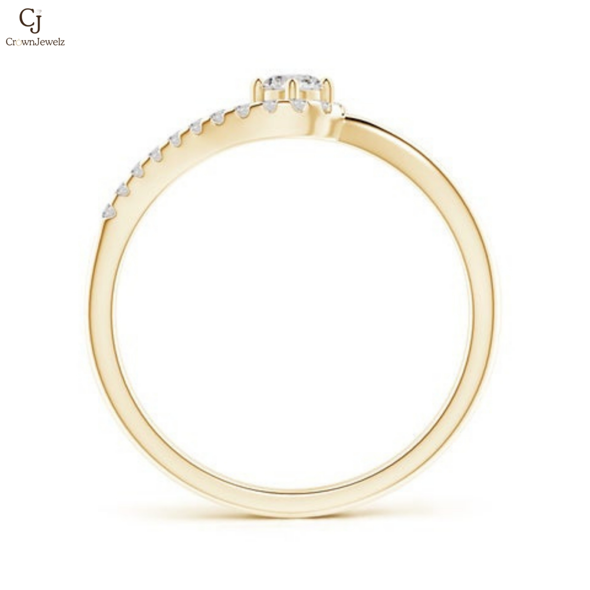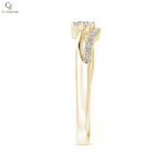 A radiant round diamond takes center stage, embraced by a graceful swirl of shimmering accent stones. Set in warm yellow gold, the flowing design adds a touch of modern romance to a timeless silhouette. Delicate yet dazzling, this ring is a beautiful symbol of love in motion.