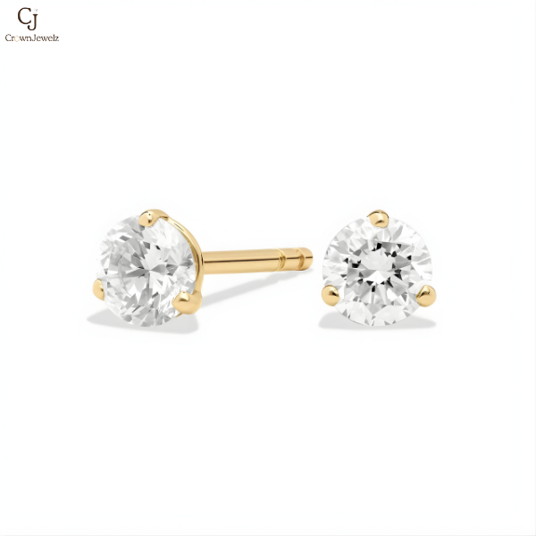 Three Prong Martini Round Brilliant Lab Grown Diamond Earrings
