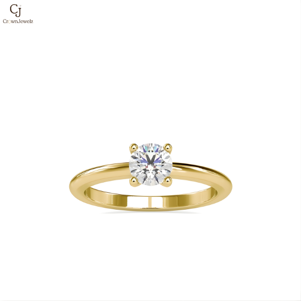 brilliant round-cut diamond secured in a classic four-prong setting. Crafted in warm rose gold, the smooth polished band highlights the natural sparkle of the center stone while maintaining a refined and minimalist silhouette. Designed for enduring beauty and everyday comfort, this ring is a timeless symbol of love and commitment.