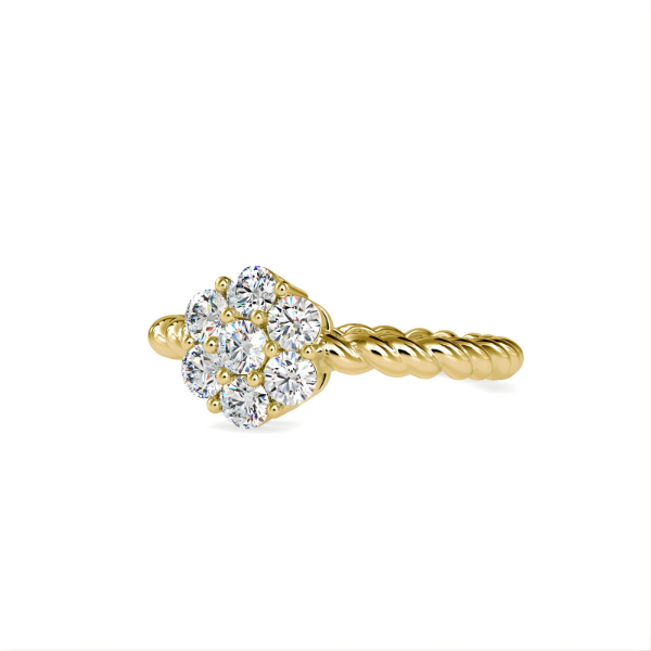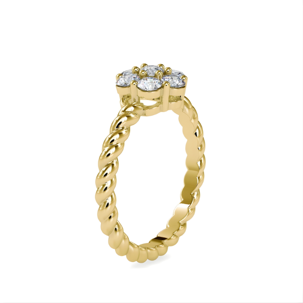 A romantic and contemporary design, this rose gold ring features a sparkling round diamond halo centerpiece set in a refined prong setting. The twisted rope-style band adds texture and elegance, creating a graceful balance between classic brilliance and modern craftsmanship. Perfect as an engagement ring or a statement piece, it offers timeless beauty with a distinctive twist.