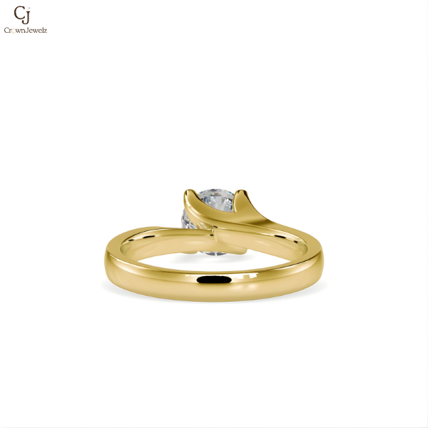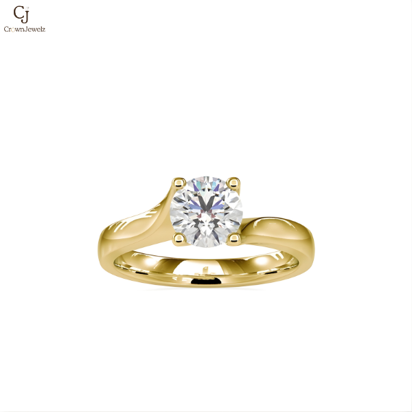 The softly twisted band creates a graceful bypass silhouette, drawing the eye toward the center stone while adding a modern, sculptural touch. Crafted in warm rose-gold-tone metal with a high-polish finish, this design blends timeless romance with contemporary style—perfect for engagements, proposals, or meaningful milestones.