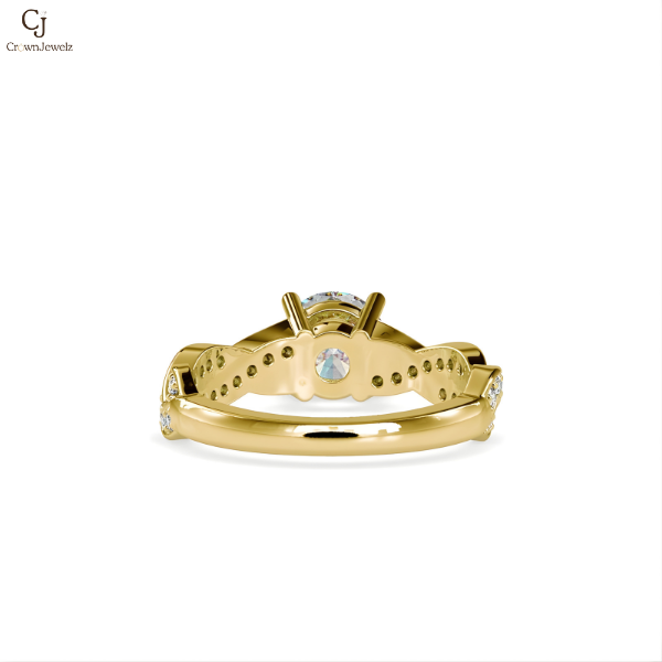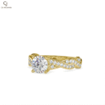 This exquisite engagement ring features a brilliant round-cut center diamond set in a classic prong setting, complemented by an intricately twisted band adorned with sparkling pavé diamonds. Crafted in warm rose gold, the flowing vine-inspired design adds elegance, depth, and romantic charm while enhancing the brilliance of the center stone. A perfect choice for those who love graceful detail and timeless sophistication, this ring is designed to symbolize everlasting love