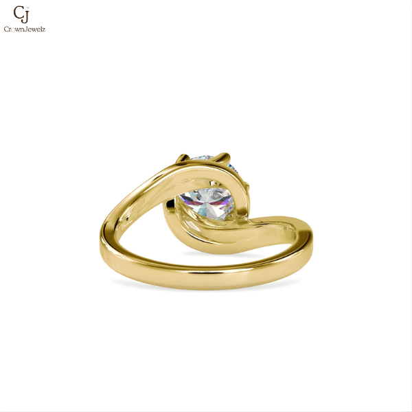 vintage-inspired solitaire features a regal crown-style prong setting that elevates the round-cut center stone for maximum brilliance. The smooth, rounded band adds a classic touch, while the raised head allows light to flow freely through the diamond. A perfect choice for those who love traditional elegance with a subtle royal influence.