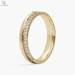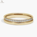 Elegant in its simplicity, this yellow gold band features a delicate row of shimmering diamonds set within a sleek, modern silhouette. The subtle sparkle adds just the right touch of brilliance to its warm golden glow. Perfect for stacking or wearing alone, it’s a timeless piece designed for everyday sophistication.