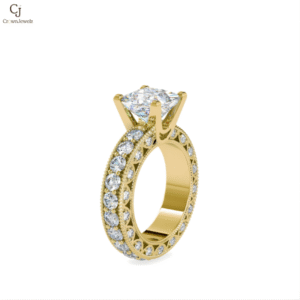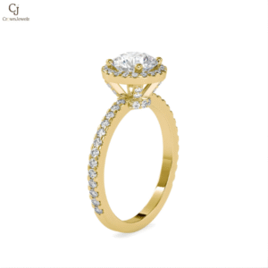 A dazzling round center encircled by a shimmering halo and milgrain detailing. This piece captures old-world artistry with modern brilliance.