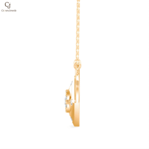 Amour Radiant Heart Pendant showcases a sculpted golden heart adorned with a cluster of sparkling diamonds at its center, symbolizing love illuminated from within. The geometric detailing adds a modern twist to a timeless romantic icon.