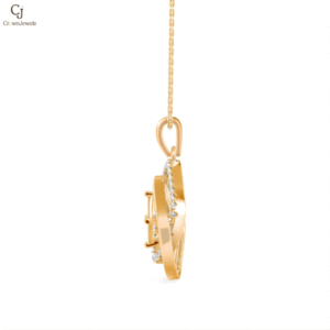 Celestia Swirl Diamond Pendant showcases flowing gold curves wrapped in a graceful open frame, accented with shimmering diamonds along the inner swirl. The sculptural design captures motion and light, creating a captivating glow from every angle. This piece blends artistic beauty with modern luxury.